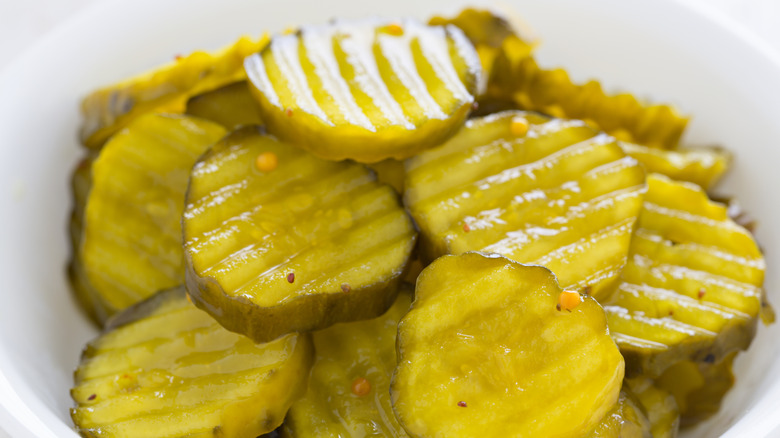 While the standard dill pickle is ubiquitous on burgers, sweet pickles can offer a different take with a mellower taste that can offset other strong flavors. "We use sweet pickles, as their sugary-sour profile makes our burger unique," explains Sammy Gianopoulos, chef and co-founder of Sammy's Sliders. "Sweet pickles are also a delightful addition as they balance savory flavors, adding a surprising twist to a classic burger." An option such as 365 by Whole Foods Market Organic Bread And Butter Pickles will do nicely.