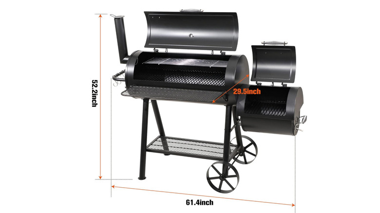 Many reviews said the price and value were the top things buyers liked. They also enjoyed that it was flexible for those cooking on a budget. Others liked that it was roomy — at 453 square inches of cooking space, you can fit two large briskets. Additional positive comments mentioned that it was easy to put together, had a good smoke flavor, and came apart easily. However, there were some mixed opinions on how airtight this model is, with some users saying the smoke can leak through the joints.