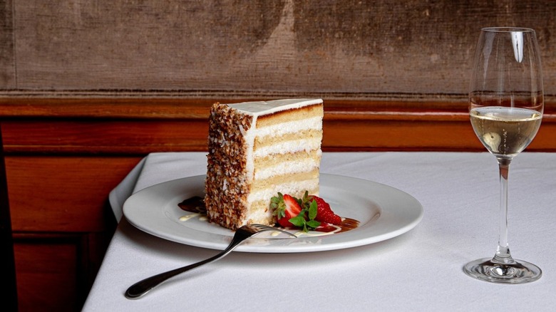 Bobby Flay's choice of favorite dessert is interesting. It's one he absolutely loves, but it's also apparently not what he'd have at his last meal. Flay's all-time favorite dessert is the Ultimate Coconut Cake from the Peninsula Grill in Charleston, South Carolina. This is a huge cake (which you can mail-order, by the way, for almost $300) with 12 layers of vanilla cake, cream cheese frosting, and coconut that weighs in at a whopping 12 pounds. The cake has been on the Grill's menu since the restaurant's second day in operation, and it remains a customer favorite.