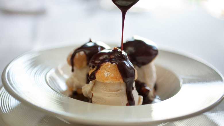 Garten's love for profiteroles was evident in her Instagram feed when she posted a video showing chocolate sauce being drizzled over large profiterole halves packed with ice cream, calling it the "only dessert to order in Paris." Profiteroles are her ultimate dessert recommendation for Valentine's Day as well. Profiteroles are also known as cream puffs, and they're usually served split in half with ice cream or pastry cream in the center. But if you want to know what her favorite dessert would be in spring, specifically, get ready for raspberries and rhubarb, which she pairs in a free-form crostata. The filling is laced with orange zest and juice, and the crust is dusted with sugar — just the combination you want when days are getting warmer and berries fill supermarket shelves.
