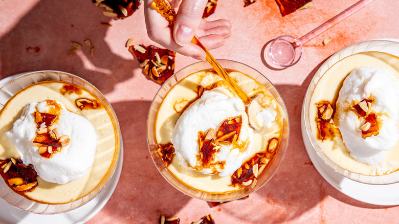Zakarian's Instagram soufflé recipe was a bit different. There were no egg yolks; just the whites along with pastry cream, raspberry puree, sugar, and vanilla extract. According to his instructions, you'd still beat the egg whites, but you'd then add the sugar, and finally mix in the cream and puree. Soufflés can be of just about any flavor, so if you want to branch out from raspberry, you'll find many different recipes online.
