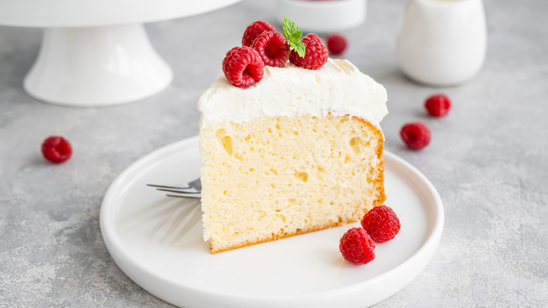 Tres leches cake is a sponge cake that you soak in evaporated milk, sweetened condensed milk, and heavy cream or whole milk, hence the name "tres leches," or "three milks." It's frosted with whipped cream, and if you make it, don't substitute another type of cake. The reason tres leches uses sponge cake is because that will hold up best after being soaked in all the milk. Drummond notes that you have to be careful not to overmix the cake batter because that would make the cake too dense to absorb all the milk, and the resulting cake would be too dry.