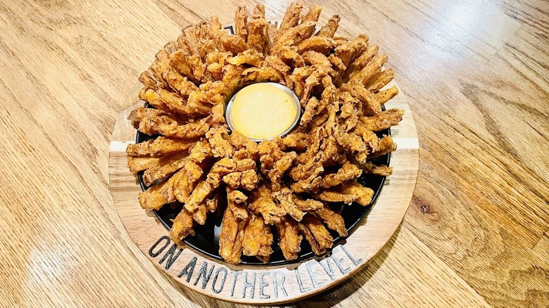 Even if you've never been to an Outback Steakhouse, the chances are slim that you do not know what a Bloomin' Onion is. Not only has the chain advertised it heavily for many years, but it's also downright delicious. And when a dish is this tasty, word gets around. What makes the Bloomin' Onion so special? Well, the onion is sliced to a deliciously thin texture, coated in flavorful breading, and deep-fried to perfection. Plus, it looks stunning, and you get plenty of it. It's kind of a sight to behold. The taste and texture are out of this world, too.