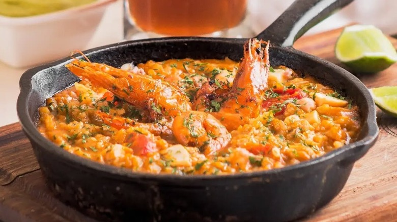 Arroz a la tumbada is another dish from the port city of Veracruz that screams of foreign influences. The name translates to "tumbled rice," which may be a reference to how the ingredients are jumbled together into a one-pot meal. It's a hearty dish of rice and seafood in a spicy tomato sauce that shares characteristics with a number of dishes like thieboudienne and jollof from West Africa, Spanish paella, and jambalaya. But while it may have been inspired by other cuisines, many of the ingredients are distinctly Mexican.