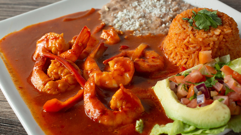 Visit any seafood restaurant in Mexico and there's a good chance you'll find camarones a la diabla on the menu. The name translates to "deviled shrimp" or "shrimp of the devil," which should give you a good indication of the fiery nature of this dish. Many believe it originated in Veracruz, a city on the Gulf of Mexico, although now you can find it all over the country. Recipes vary, but it's essentially shrimp tossed in a spicy tomato-chile sauce.
