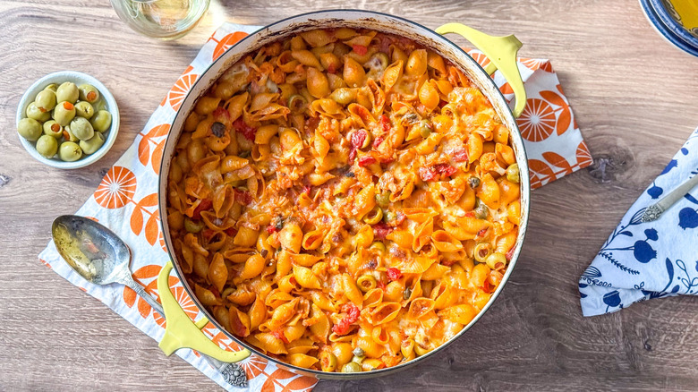 If the thought of serving tuna casserole at your next gathering sounds pedestrian, think again. Bring some flamenco flair to the table with this Spanish romesco-y tuna casserole, courtesy of recipe developer Julie Kinnaird. Packed full of flavor reminiscent of a traditional Spanish romesco sauce, this casserole has enough elegance and sophistication to make it the centerpiece of dinner or part of a full tapas spread. The recipe calls on classic Spanish ingredients like smoked paprika, roasted peppers, pimento-stuffed olives, cauliflower, and oil-packed fish, to add a lively and complex depth of flavor that elevates this dish. With these vibrant ingredients, Kinnaird transforms mundane tuna casserole into a feast for the senses.