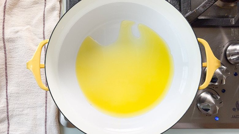 - Heat ¼ cup olive oil in a large oven-safe Dutch oven or braiser over medium-high heat.
