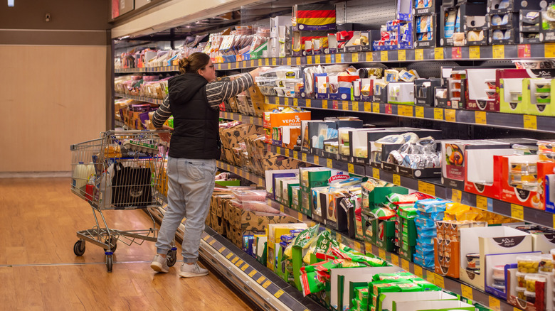 Within the Emporium Selection brand, you'll find options like cranberry cinnamon goat cheese, Irish cheddar, manchego, and Gruyère. The brand even offers specialty hand-crafted options like a roasted garlic with tomato and basil soft cheese, a pepperoni marinara semi-soft cheese, and a garden vegetable with sweet basil semi-soft cheese. If you're looking to create a stunning charcuterie board or just elevate your snacking while on a budget, Aldi is the place to visit.