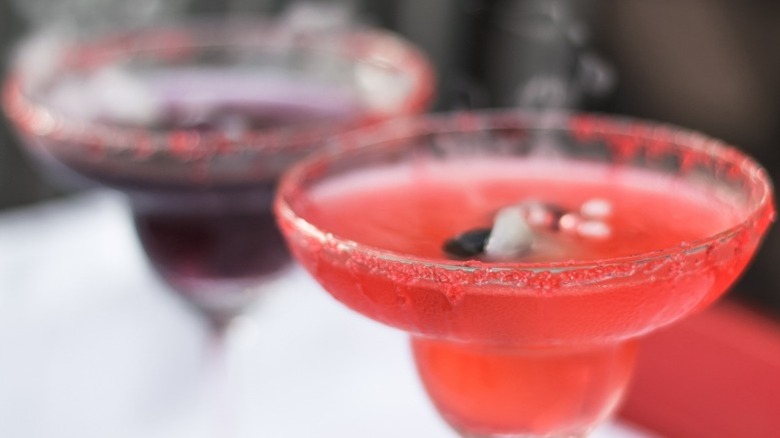 For a showstopping rim that's as flavorful as it is visually stunning, look to dried fruit. If your grocery store doesn't have them, you can buy freeze-dried fruit powders on Amazon. Brands like Anthony's and Kate Naturals have a variety of options to choose from, such as freeze-dried blueberry powder, freeze-dried strawberry powder, and freeze-dried dragon fruit powder. If you can't find your dried fruits in powder form, you can also blend the whole or sliced freeze-dried fruit into a fine powder. This creates a vibrant, flavorful dust that coats the rim beautifully or easily mixes with regular sugar or salt.