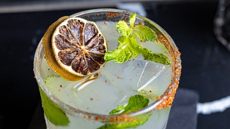 But the key to success starts with your rimming technique. You need a liquid to help the rim adhere, and fresh lime juice is a classic. Simply run a lime wedge around the edge of your glass for an even coat. If you're experimenting with sweeter or more unconventional rims, agave syrup, honey, or even a flavored syrup can work beautifully, though water is also fine so long as you're not using sugar. Drizzle a shallow layer of your liquid of choice into a small plate, then dip the edge of the glass in that.