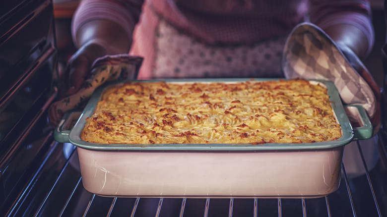 Casseroles seem to be having a moment, and even TikTokers are on the trend. Between busy lives and wanting a creative dinner or potluck contribution, casseroles present as a complex dish with (generally) minimal heavy lifting. A box of this, a can of that, and you're good. If the humble leftover hot dog can dress up a casserole, then bologna can too. It's a kid-friendly ingredient that also holds nostalgic appeal for adults. And just because you're tossing in bologna doesn't mean the casserole isn't tasty. Besides, you can always upgrade from packaged, sliced bologna to fancy deli mortadella for more complex flavors and a fancier dish.