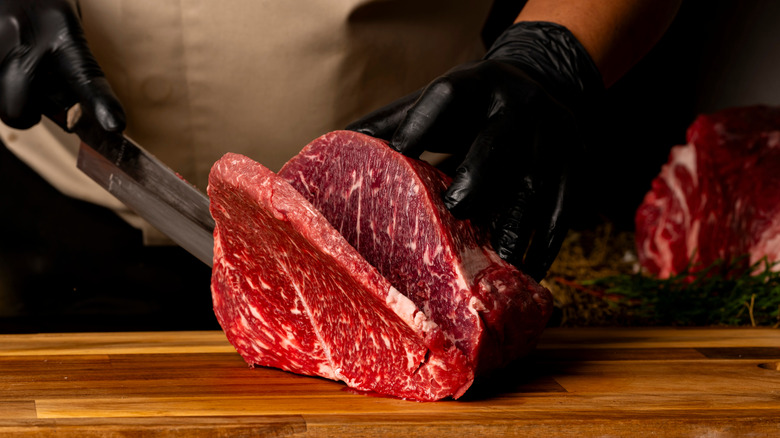 If you're looking to stretch your grocery budget without sacrificing meat quality, Costco's meat department has a solid hack: buy in bulk and cut it yourself. Rather than going straight for the pre-sliced steaks, savvy shoppers head for the whole roasts and primal cuts. With a little effort and a sharp knife, you can turn a rib roast into ribeye steaks or a strip loin into New York strip steaks — and save a few dollars per pound in the process.