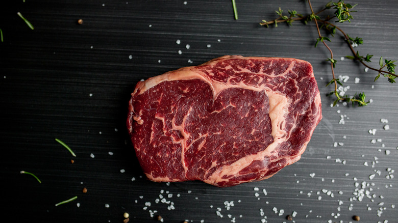 If you're wondering exactly what a ribeye is, the answer lies in the name. It's meat taken from the rib area of the cow — to get more specific, it typically comes from between the 6th and 12th ribs. The "eye" in "ribeye" comes from the signature curved line of fat that hugs the central part of the steak. This fat is to thank for the ribeye's exceptionally tender texture. Even outside of LongHorn Steakhouse, it's a very popular cut of beef.