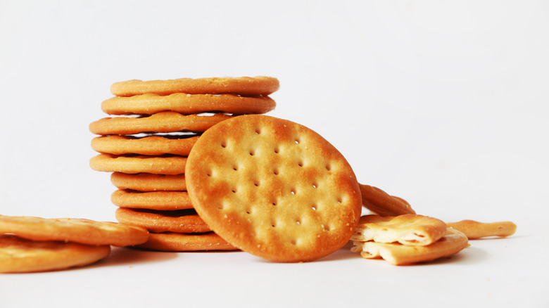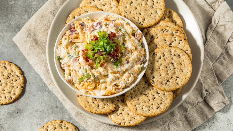We've already discussed how to use canned oysters to make a salad for topping crackers, but this approach makes it even easier. Crackers, spreadable cheese, and oysters are a match made in heaven. You can make them several ways, but the basic recipe remains the same: Instead of chopping and stirring, all you have to do is spread cream cheese on a nice cracker — think Carr's Table Water Crackers or the Toasteds Cracker Collection — and top the combo with a smoked oyster.