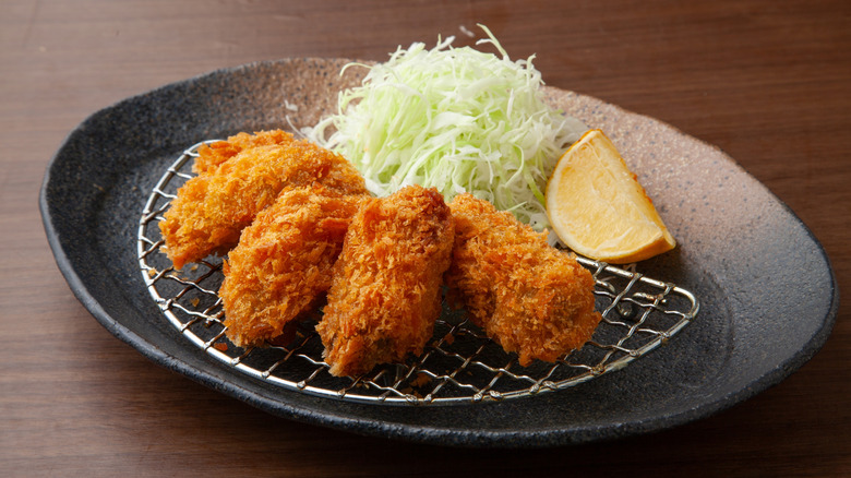One recipe combines flour, cornmeal, crushed Premium Saltine Crackers, and Old Bay Seasoning into a dredge. You drain your oysters, dunk them in whisked eggs, roll them in the dredge, and fry. Or you could give them an Eastern Asian flair and fry them with furikake seasoning, a Japanese blend of nori seaweed, salt, sugar, fish flakes, and sesame seeds, with the regional and brand-based variation you'd expect. This Nori Komi Furikake Multi-Purpose Rice Seasoning is a good way to go if you don't feel like making it yourself.