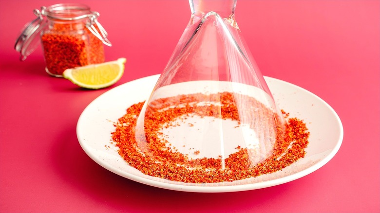 You may inspired to make this drink after watching the film "One of Them Days," starring Keke Palmer and SZA, where this martini with a spicy twist was featured. The cocktail base can be a classic martini with vodka, dry vermouth, and ice. Or, try one of the variations that have been created on social media — an Instagram user made a cocktail with strawberry lemonade, lime juice, pineapple juice, triple sec, and tequila to pair with the Hot Cheeto rim. The Hot Cheetos will need to be crushed into a fine powder so they can more easily adhere to the glass. Before dipping your chilled martini glass in the Cheeto powder, rub the rim with a cut lime so the dust will bind.