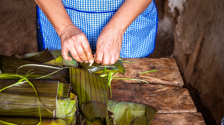 Güemes tamales are another Baja California specialty that directly reflects the state's history and climate. But if you've only ever had supermarket tamales wrapped in cornhusks and filled with basic shredded meat, Güemes tamales may come as a surprise. Instead of an edible package wrapped in a cornhusk, you'll get a packet of goodness wrapped in a dark green banana leaf.