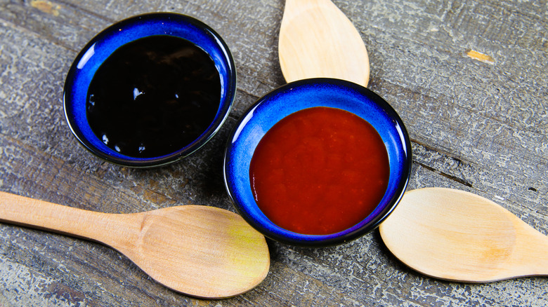 Your typical bottle of Heinz or Hunt's displays a tanginess in conjunction with savory notes of onion and garlic, along with sweetness from the added sugar. Black garlic ketchup offers an even bolder flavor but, as mentioned, the fermentation process gives the condiment a rich umami character with hints of caramelization. The overall product has a deeper, more complex flavor profile compared with the common red ketchup found in squeeze bottles at your local diner. But if you've got questions about the classic tomato version of the condiment, here's a guide on everything you ever wanted to know about ketchup but were too afraid to ask.