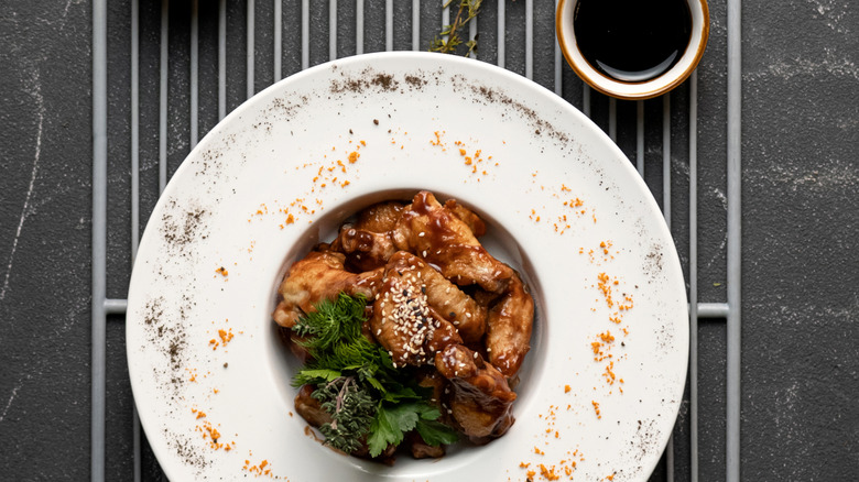 Unless you're a true condiment connoisseur, it's possible you've never heard of black garlic ketchup before. But that's okay. This gourmet sauce is newer to the market, and it's made with typical ketchup ingredients like tomato puree, sugar, vinegar, and spices. What makes black garlic ketchup special is, of course, the fermented black garlic. The aged allium lends this condiment some unique qualities, altering both the color and flavor of the sauce.