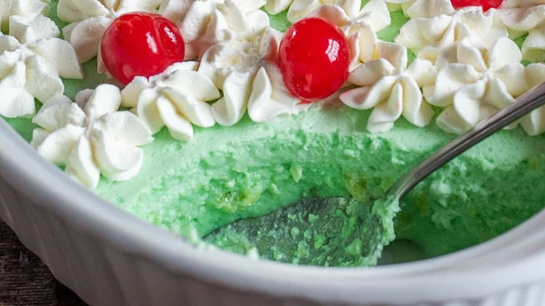 Its use in Jell-O salads became popular in the '70s, resulting in the fluffy, citrusy salad we know today. Most recipes call for 7-Up, lime or lemon Jell-O, fruit, and some variation of marshmallows. The resulting texture is an interesting one, especially if nuts are added. For a creamier texture, some recipes call for softened cream cheese to be added to the Jell-O mixture when it's hot. Today, Jell-O salads are still loved in the Midwestern United States and recipes continue to be handed down.