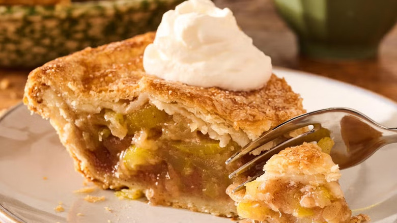 As the name suggests, mock apple pie isn't apple pie at all — there aren't apples in it. That's right: mock apple pie may smell like apple pie when cooking in the oven, but it's a fruitless dessert born from times when apples were hard to come by or scarce. Most recipes today use Ritz crackers, but the recipe is thought to date back to the mid-19th century when cooks needed to get creative without fruits to rely on for sweetness and flavor.
