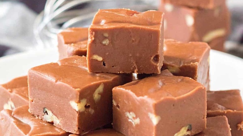 The average fudge recipe uses sugar, salt, milk, butter, and other flavorings to make a pan of the much loved, creamy confection. With the Velveeta version, there's the addition of one block of the stuff alongside cocoa powder (since the recipe does best with chocolate fudge as opposed to vanilla or other flavors). The Velveeta gets melted down alongside the butter then added into the dry ingredients and mixed until stiff before getting pressed into a square pan. Those who love the recipe say that they don't taste the Velveeta at all, but reap the benefits of its creaminess in each bite.