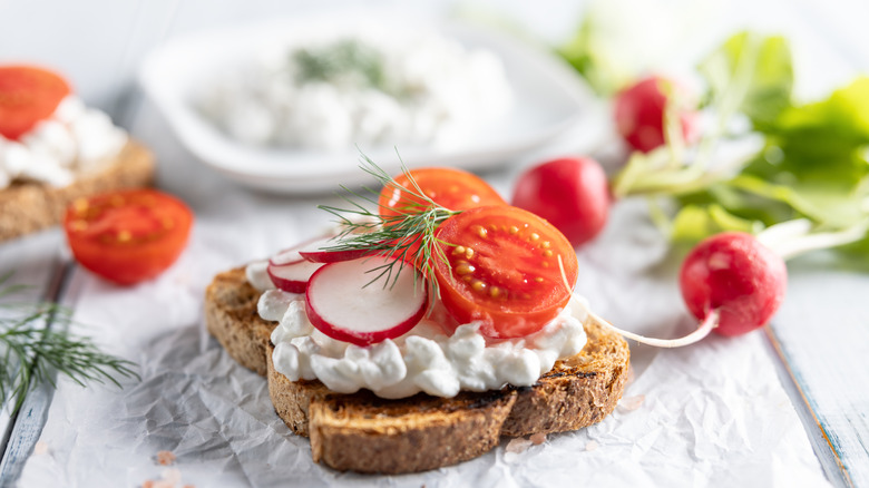 So, the big question: Why the cottage cheese swap-out in the first place? Everyone has a method to their madness. Even Julia Child elevated her tuna sandwiches in delicious ways, usually to achieve certain flavor or textural goals. Subbing in cottage cheese is just more of the same, but it also gives you some important nutritional boosts. If you're looking for something a little more nutritious than mayo (yet still wonderfully creamy), cottage cheese is your bet. It contains crucial minerals like potassium, vitamin D, and calcium. It also contains phosphorus, which is a vital mineral for our bones, teeth, and for our bodies to make protein.