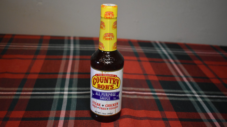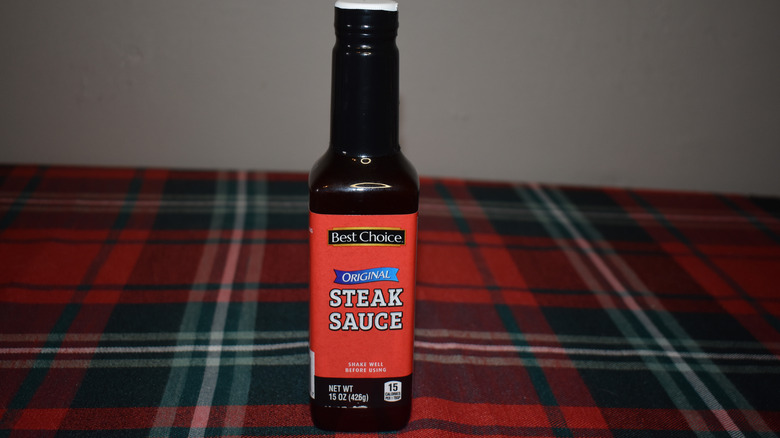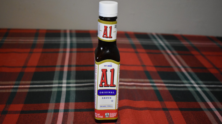 There's a reason A.1. is considered the king of steak sauces. That's because there really is nothing that compares to its signature taste. The originator of the sauce — Brand and Co. — is a British company, so it's got roots in the country that created brown sauce. It contains tomato puree, crushed oranges, dried garlic, dried onion, and a blend of spices. Not only can you use it as a dip, but it's also great as a marinade. It's also pretty good on other proteins or grilled veggies.