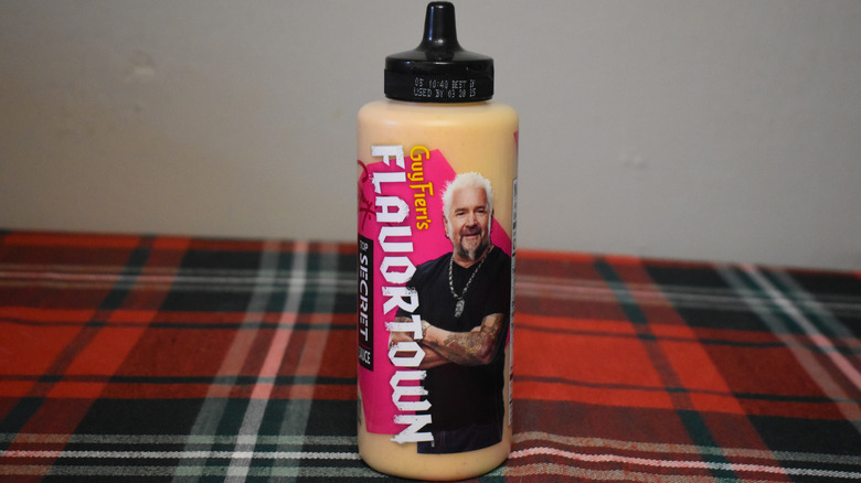 I was honestly excited to try Guy Fieri's Flavortown Secret Sauce. While it's mostly advertised for burgers, chicken, and other dishes, it does claim to be for "everything" — I thought this would be perfect to use on a steak. The bottle describes the sauce as a creamy aioli with chili powder, a subtle hint of mustard, and garlic. This sounded like something right up my alley, as I enjoy a good creamy, garlicky sauce. I thought it would be a good departure from the more traditional, vinegar-heavy brown sauce.