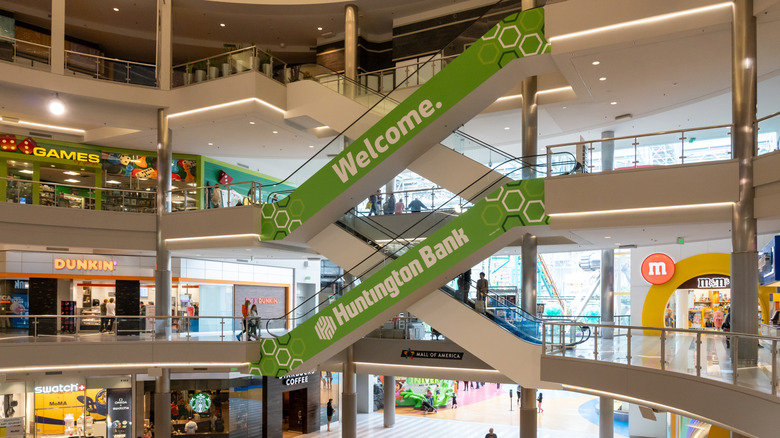 When the Mall of America (MOA) opened in 1992, it was the second-largest mall in the world. Today, it no longer makes the top 10, but it's still the largest mall in the United States and in the Western Hemisphere as a whole. The mall is based in Bloomington, Minnesota, just south of the Twin Cities, and is a staggering 5.6 million square feet in size. Inside, you'll find a theme park, aquarium, a variety of other interactive experiences, hundreds of stores, and an astonishing number of places to eat.