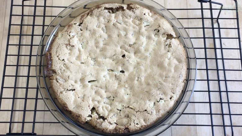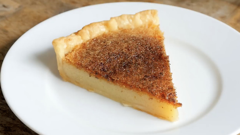 Vinegar pie consists of only a few elements: sugar, eggs, butter, salt, and apple cider vinegar. While the last component makes it seem like it would be overly sour or acidic, it actually creates a pleasant balance of sweet and tangy flavors. This confectionery good has a hint of citrus flavor paired with a smooth and silky texture.
