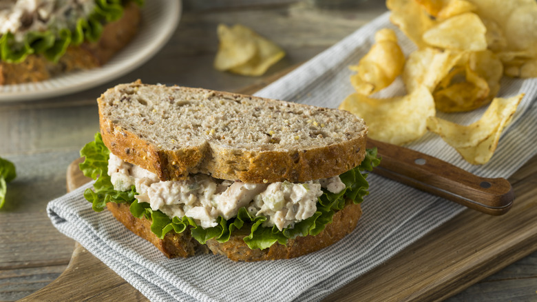 You can easily make a basic chicken salad with little more than the titular protein, mayonnaise, and a few seasonings. You can also scale it up with a touch of sweetness from fresh or dried fruit, a spicy chili crisp kick, or crunchy items like celery, nuts, or toasted pepitas. The perfect filling to prep for multiple sandwiches, you can store chicken salad in an airtight container in the refrigerator for a few days, provided your rotisserie chicken leftovers weren't already sitting around for too long before being repurposed.