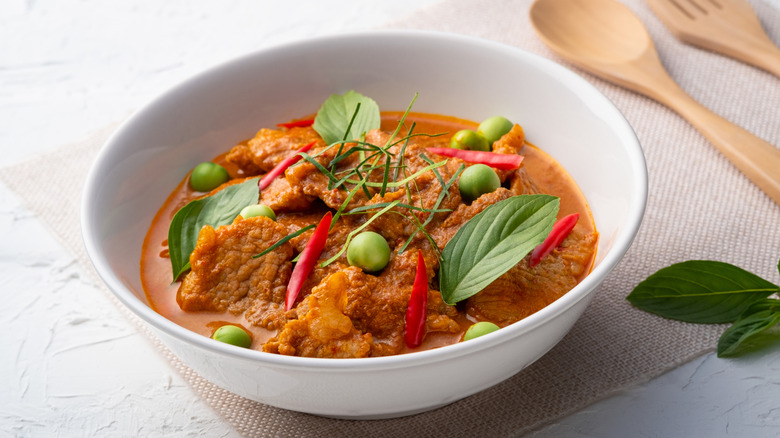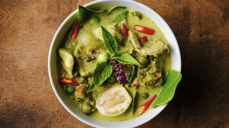 If you're worried about the level of heat, Thai food is good for customization. Maricel Gentile says that "the beauty of Thai (and Asian foods in general) is that you can choose your protein, such as chicken, shrimp, pork, beef, or tofu, or leave the protein out." She also recommends asking to "adjust the spice level to whatever you like." If you're cooking at home, this is easy to do by changing the amount of curry paste that you use. If you're at a restaurant, just let your server know how much heat you can handle.