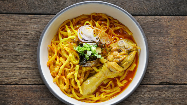 Khao soi is a light lunch dish that hails from Northern Thailand. It is served with a rich coconut milk broth but it is not nearly as soupy as most curries, although it still includes some curry paste. "It's warm, comforting, and filling — ideal for midday dining," says Jessica Randhawa. If you want to make it into a heartier dish, add extra protein like chicken or beef.