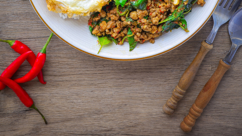 Chuck Valla recommends it for those who are used to pad Thai as an alternative that's loaded with similar ingredients with a different twist, thanks to the shrimp and rice combo. While pad Thai is noodle-based, this dish relies on fried rice instead. But it brings a similar spice level and combination of bright herbs, savory spices, vegetables, and proteins. Many restaurants add egg to the mixture as well.