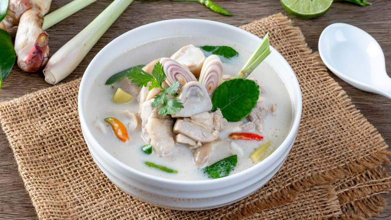 On the other end of the texture spectrum from pad krapow moo saap stir-fry is tom kha gai, a soup loaded with a lot of flavor that features traditional Thai ingredients. For these reasons, Jessica Randhawa recommends it for newcomers trying Thai food for the first time.
