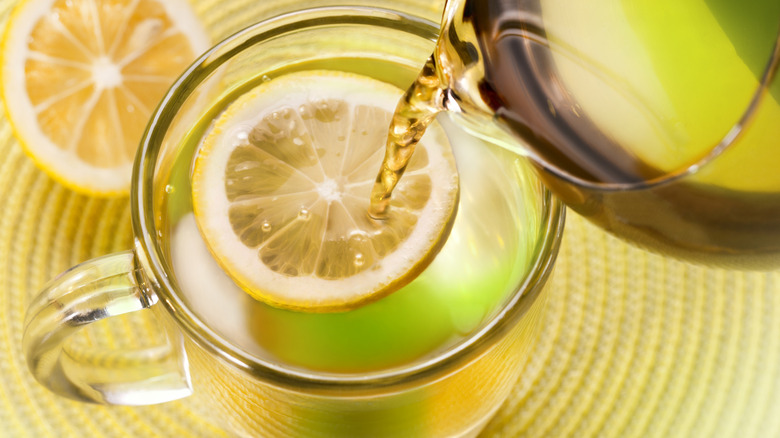 Steeping your tea in ginger ale will give it a kick of spice and make it just as sweet as you want, depending on your choice of brews — both the brand of ginger ale and tea. Now, just to be clear, you're always told to drink ginger ale when you have a stomach ache, but does it really help? Ginger does provide nausea relief and contains anti-inflammatory compounds, namely gingerol. But, if you're purely trying to fight a stomach ache, ginger ale may not be the way to go. In some cases, ginger ale may not be entirely helpful because the sugar could offset some of the assistance that the ginger, sans sugar, could offer. But for a tasty, semi-spiced, simple cup of calming hot tea, ginger ale is just the trick you need.