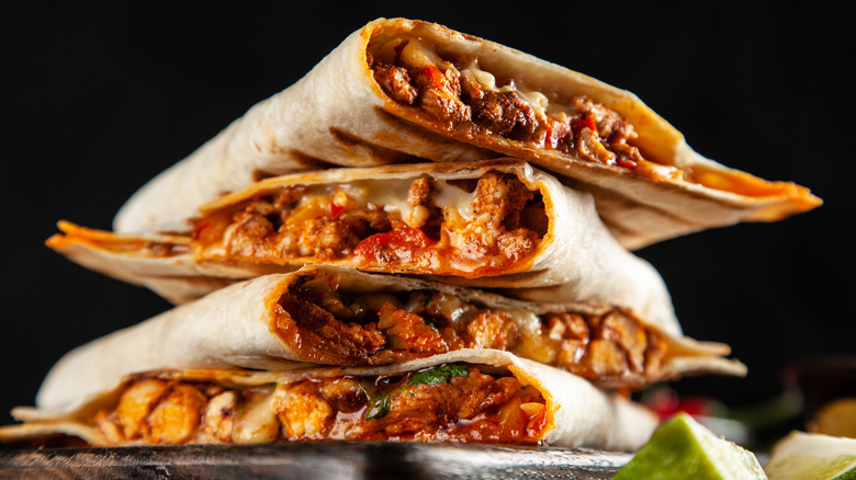 If you love your classic recipe, but just want to add some beans in for extra satisfaction, they go well with chicken, peppers, onions, and jalapeño peppers, and a dollop of sour cream to serve will contrast the rich sauce nicely. Once the quesadillas have been toasted in the pan, you will have a meal that manages to be crispy, gooey, rich, and utterly delicious all on one plate — and that should keep everyone happy.