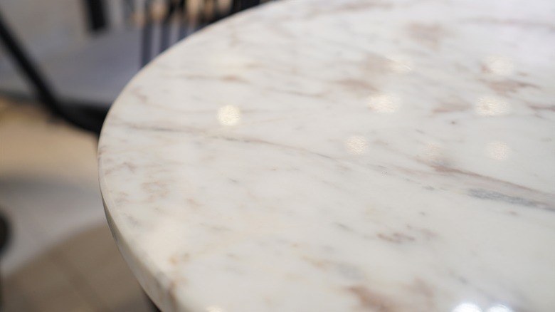 It's worth doing a test run of faux marble before committing to the whole countertop. Home improvement stores like Lowe's and Home Depot sell cheap squares of wood for around $5 that you can sand down and paint to get an idea of the final result. On the same note, purchase a sample size of paint before splurging on the whole bucket. If you're not satisfied with the mini, then the big version might not make for the kitchen of your dreams.