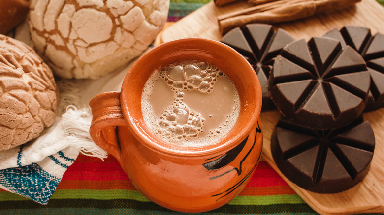 Champurrado is another hot chocolate drink from Mexico that is part of a broader category of maize-thickened beverages called atole. The drink goes back to the pre-Hispanic period in Latin American countries, where it was used as a versatile and nutritious drink flavored with popular ingredients of the time, such as cacao and spices. Contemporary champurrado is made by adding masa harina to the ingredients you'd otherwise use to make Mexican hot chocolate, forming a thicker, more richly flavored version of the drink. Whether you make chocolate caliente or champurrado, remember that thick drinks have much higher heat retention, so sip carefully even if your cup has been sitting for a while.