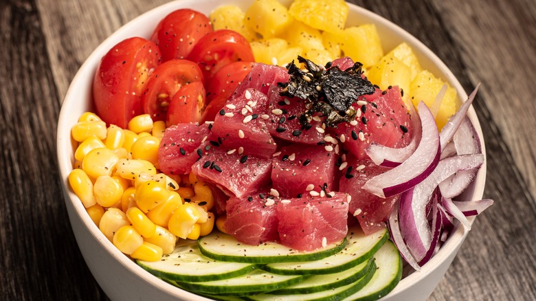 As the name suggests, all you need to create your bowl is a base of grains, like rice, quinoa, or farro, as well as toppings. Poke bowls are like sushi in a bowl, often topped with fresh fish, furikake, and fresh veggies. Pickled red onions pair well with seafood, be it tuna or crab, and complement a spicy mayo dressing quite well. You can also add a little sprinkle of the onions to your Mediterranean-inspired bowl, complete with quinoa, crumbled feta, hummus, thinly-shaved meat or falafel, and tahini. In both of these instances, the pickled onions add a restorative flavor to the bowls, alongside a crunchy texture and a bright pop of color.