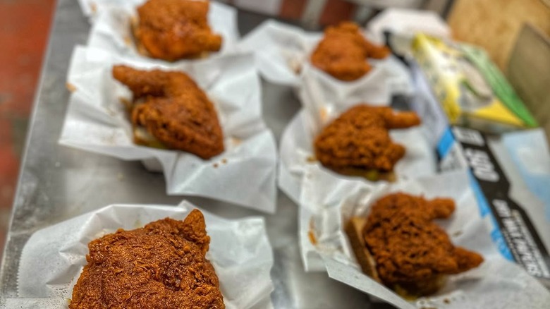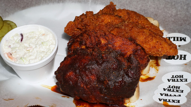 Located in the popular The Nations neighborhood in West Nashville, Pepperfire quickly gained a reputation for making classic hot chicken capable of holding its own against any of the more celebrated names on this list. What really sets it apart, though, are the thoughtful, novel spins on the tried and true Nashville classic. Notably, there's a menu item called a "Peppercheese." It's a grilled pepper jack cheese sandwich that's deep fried. It's great on its own, but even better when upgraded to the "Apple Jack," which includes both hot tenders and baked apples in the sandwich.