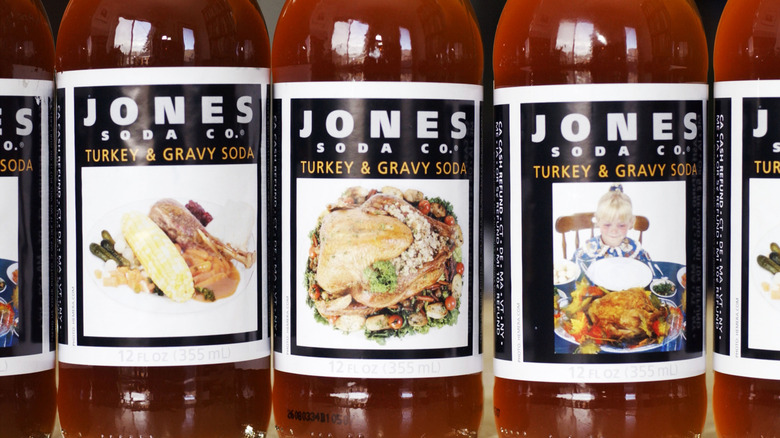 Many of the savory sodas brands release are meant more as a tongue-in-cheek kind of attention grabber than they are meant to be something people actually want to drink. Take Jones' Turkey and Gravy flavored limited release for example: it's not something people are raving about for its refreshing qualities, but if you used it as an addition to a turkey brine the bouillon flavoring would blend right into your turkey and the carbonation helps to break down those muscle fibers.