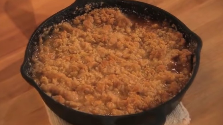If apple-based sweets are your thing, take a look at Emeril Lagasse's classic apple crisp. He himself has called this "one of [his] all-time favorites," on his YouTube tutorial and it's easy to see why. Tart and sweet apples (Granny Smith and Golden Delicious, which are the great apple varieties for baking) are combined with simple sugar, cinnamon, and cornstarch and then covered with a buttery, brown-sugar-filled crumble topping that turns beautifully golden in the oven.