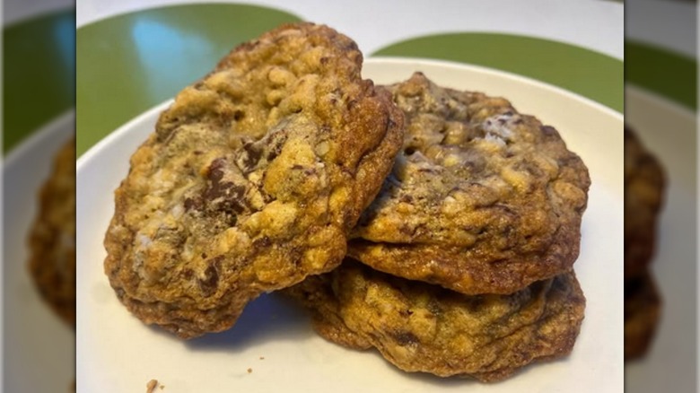Ina Garten's favorite cookie recipe is her own for salty oatmeal chocolate chunk cookies. Luckily, whipping up a batch is pretty quick, so she can make them whenever she wants. She's included salt to enhance the flavor of the chocolate and to give the cookie a boost. Plus, the fact that she uses chocolate chunks instead of chips (which contain stabilizers) means the chocolate will melt more and be softer when you bite into it.