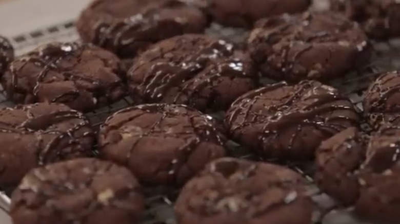 Another celebrity chef who likes cookies is Jamie Oliver, and his favorite is his devil's double choc malt cookies, which are as decadent as they sound. His recipe includes butter, dark chocolate, condensed milk, malted milk, malted chocolate candy, and white chocolate. These all lend their intense flavors and rich textures to these thick cookies that are then drizzled with more chocolate.