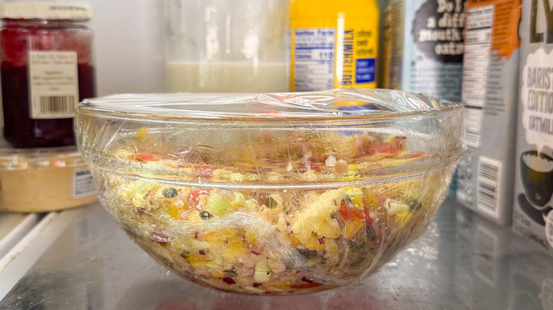 - Cover the bowl and refrigerate for at least 1 hour for the flavors to combine and the bread to soften.