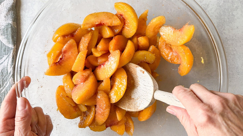 Step 3: Toss the peaches with sugar, lemon, cornstarch, and cinnamon
