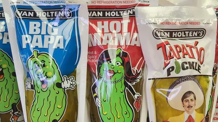Shelf life is also something to be considered. Pouched pickles are fermented, including the popular Van Holten's brand, which means they're shelf-stable for a few years with no refrigeration needed. This is obviously convenient for stores that need long-lasting snacks with low overhead. So, for gas stations, the pickle-in-a-pouch is ideal for both customer and seller because they're clean, shelf-stable, and practical.