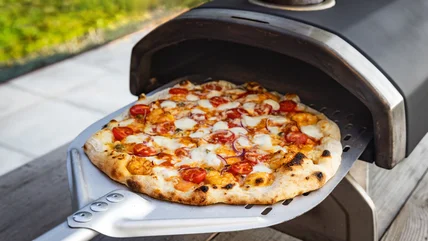 Since many people now think outdoor pizza ovens are worth the hype and have discovered a lot of unexpected uses for using one beyond making pizza, what are some of Corazzina's other tips? "Start with a well-hydrated but firm dough," he says, "adding just enough flour for structure without making it dry. Roll it thin, but not too thin, and make sure your oven is preheated thoroughly." For those who want an extra crispy pie, Corazzina suggests letting it sit on the stone for a few extra seconds before pulling the pizza out. "And always keep an eye on the pie — these ovens cook fast!"